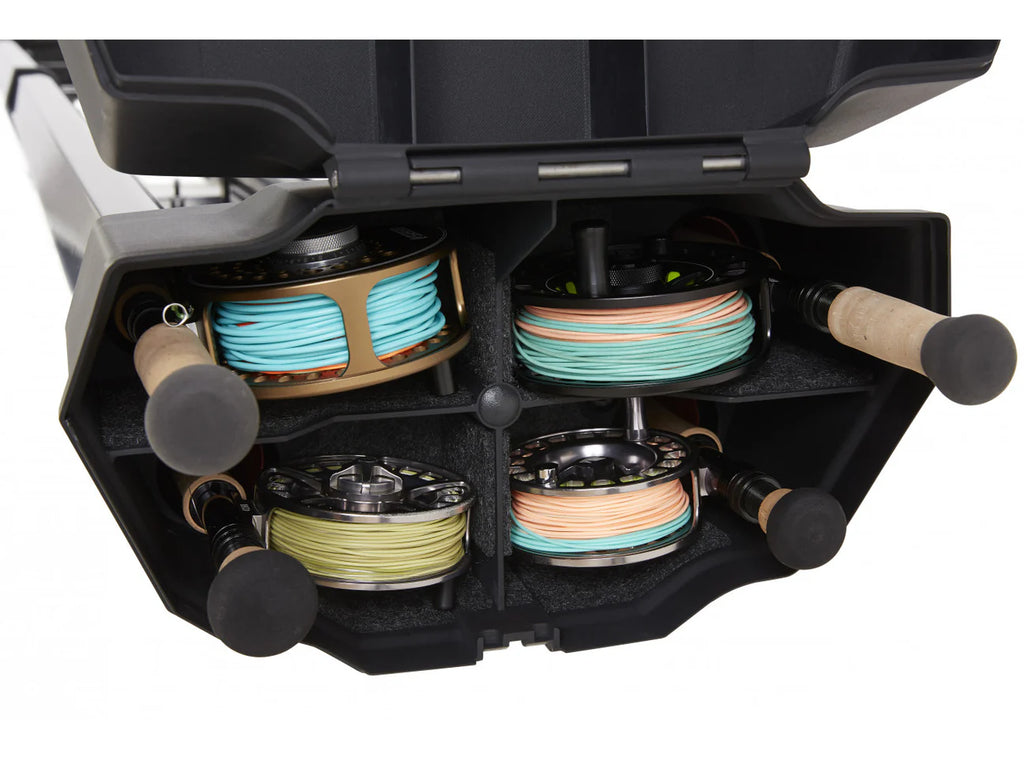 De DoubleHaul is aanpasbaar in lengte: gebruik hem in de volledige 3,3 meter (11 ft) configuratie of verkort hem tot 1,8 meter (6 ft) voor kleinere voertuigen. Vier afzonderlijke kunststofgevoerde aluminium buizen zorgen voor maximale bescherming en voorkomen slijtage aan je hengels. De zijdelingse plaatsing van de molens vermindert belasting op de geleideogen, terwijl het gevoerde molenvak ruimte biedt voor molens tot 12-wt en bescherming biedt tegen weer en wind.