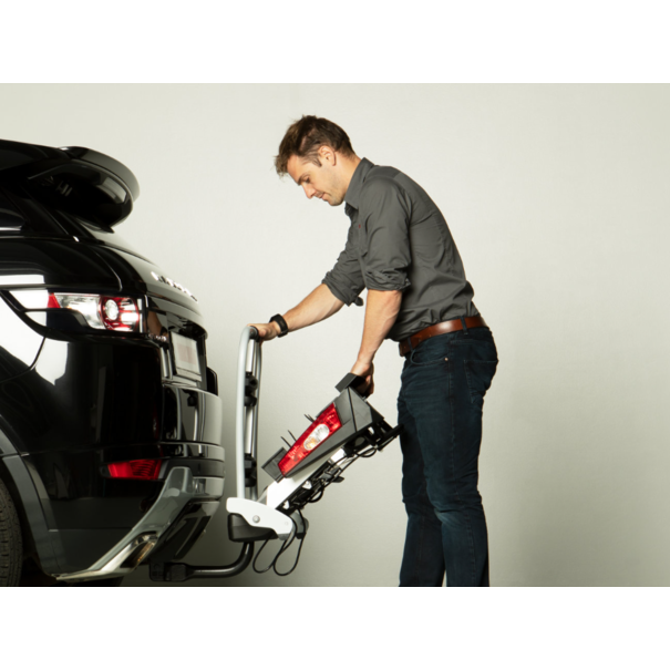 De Yakima FoldClick 2 EVO heeft ruimte voor twee (elektrische) fietsen. Het “Just Click”-systeem is gemakkelijk en vooral veilig op de trekhaak te monteren. Als klap op de vuurpijl, is het mogelijk om de fietsendrager in te klappen. Klein genoeg om in je kofferbak te bewaren totdat je hem nodig hebt.