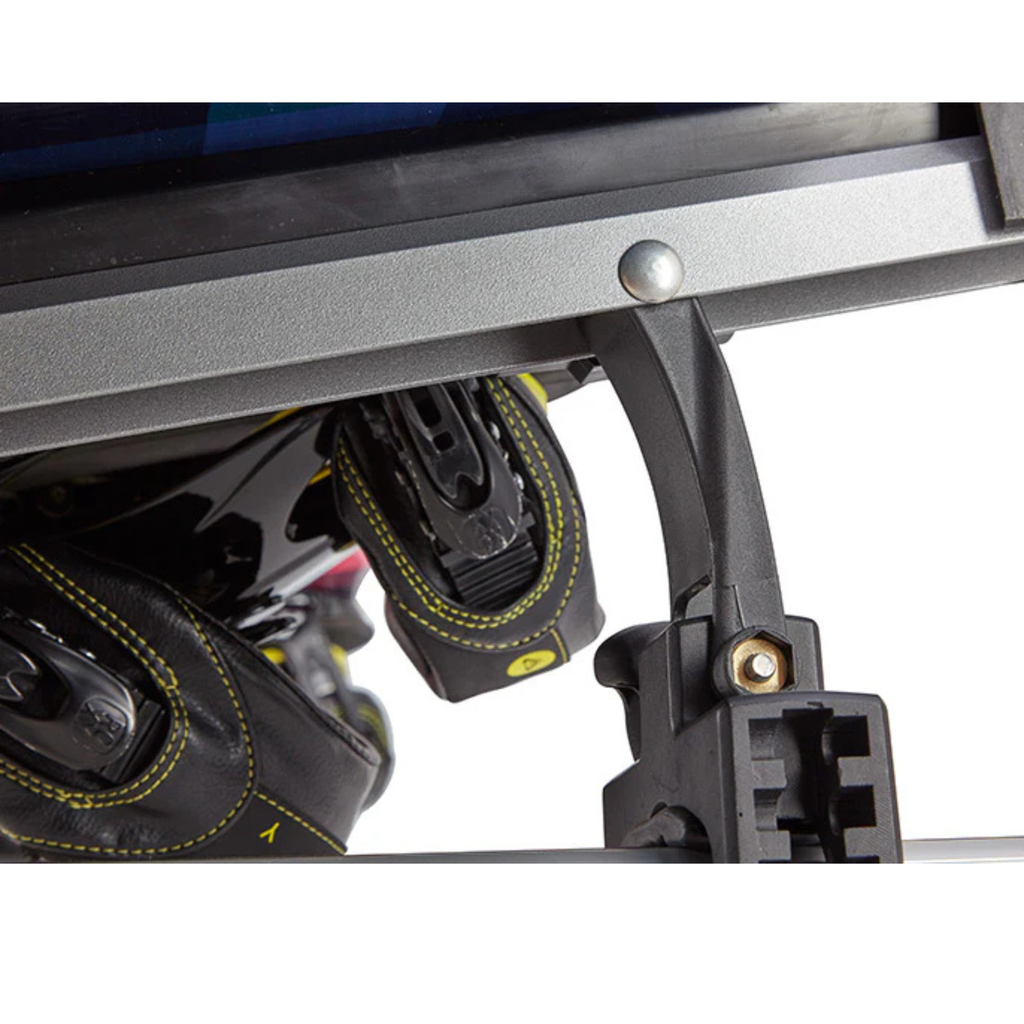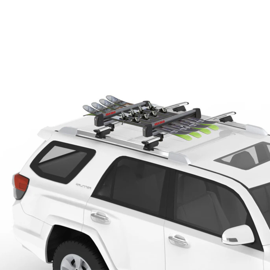 De Yakima FreshTrack 4 is de ideale skidrager voor wintersportliefhebbers die graag vroeg op pad gaan. Deze gebruiksvriendelijke drager biedt plaats aan vier paar ski’s (tot 120 mm breed aan de tip) of twee snowboards, en is eenvoudig te monteren op vrijwel elk type dakdrager – zonder gereedschap. Dankzij de grote knop kun je de drager moeiteloos openen, zelfs met handschoenen aan. De geïntegreerde SKS-sloten zorgen voor extra beveiliging van je uitrusting, terwijl de meegeleverde SkiLift-verhoging voldoende ruimte biedt voor ski's met hoge bindingen.