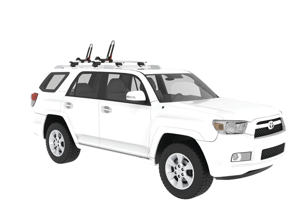 De Yakima JayLow is een veelzijdige dakdrager waarmee je eenvoudig één kajak in J-positie of twee kajaks in verticale positie kunt vervoeren. Deze slimme drager is volledig voorgemonteerd, snel te installeren zonder gereedschap, en past op vrijwel alle dakdragers — van Yakima StreamLine en ronde buizen tot vierkante, fabrieks- en aerodynamische stangen.